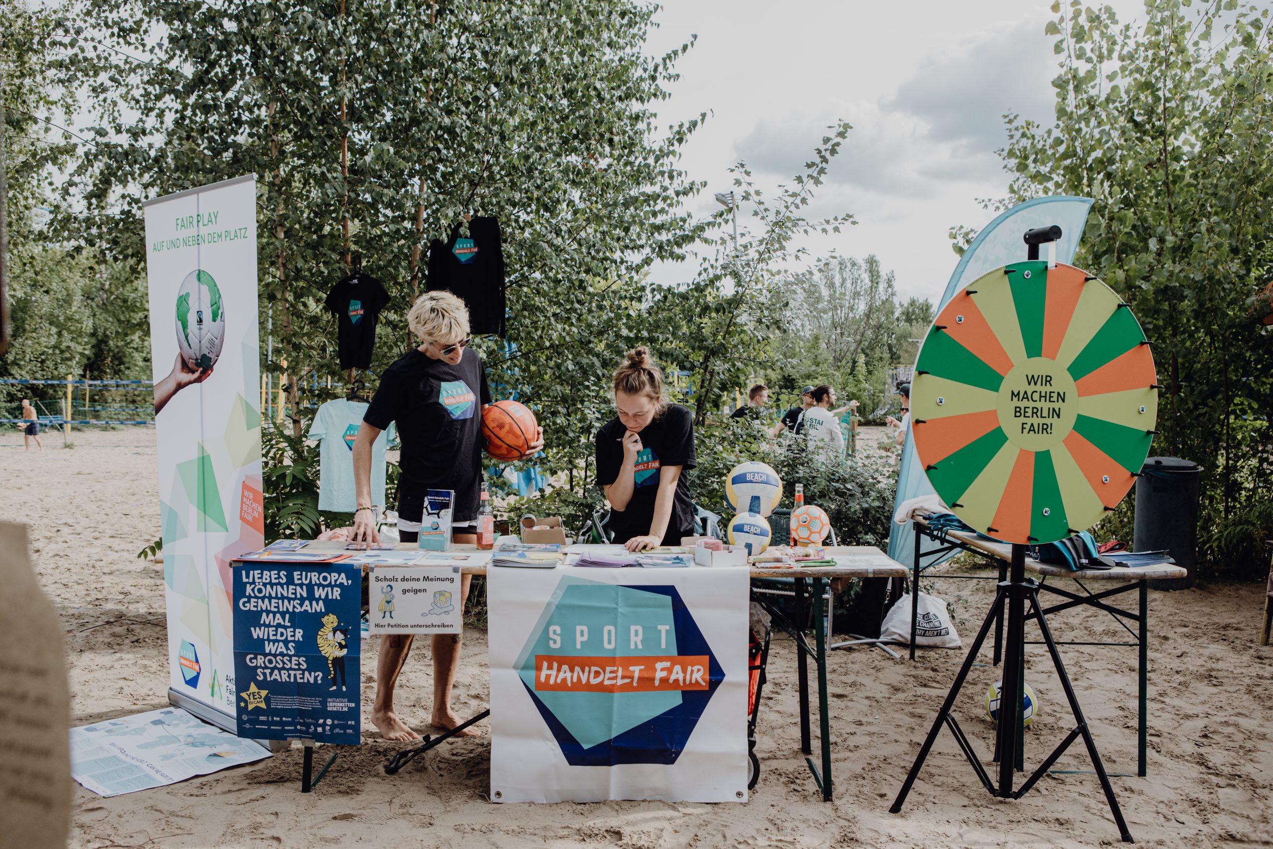 Nachhaltigkeit ist oft ein sehr abstraktes Thema. Der Sport handelt fair Infostand ist dazu da, Nachhaltigkeit greifbar zu machen und nachhaltige Alternativen und Chancen des Sports zu zeigen. Er ist die perfekte Ergänzung für eurer Event oder euren Spieltag und zeigt, warum Sport und Nachhaltigkeit so gut zusammen passen. Entdeckt, wie Trikots, Fußbälle und Basketbälle produziert werden und welche Auswirkungen Fast Fashion auf Mensch und Umwelt hat. An unserem Stand könnt ihr fair gehandelte Bälle und Trikots aus nächster Nähe erleben und erfahren, wie nachhaltige Alternativen aussehen.